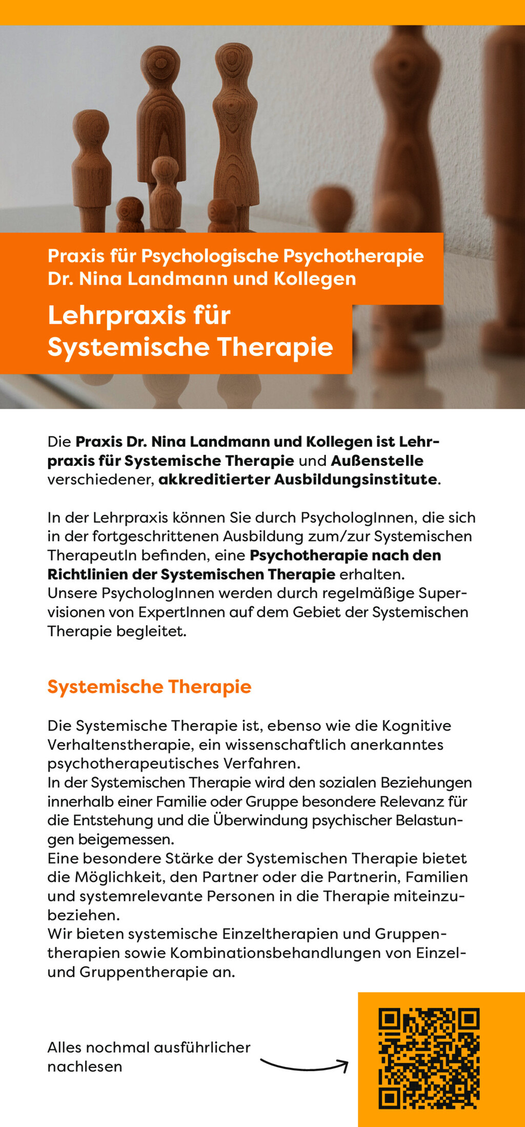 Zudem sind wir Lehrpraxis von verschiedenen Ausbildungsinstituten für Systemische Therapie, sodass in unserer Praxis auch eine systemische Psychotherapie möglich ist.